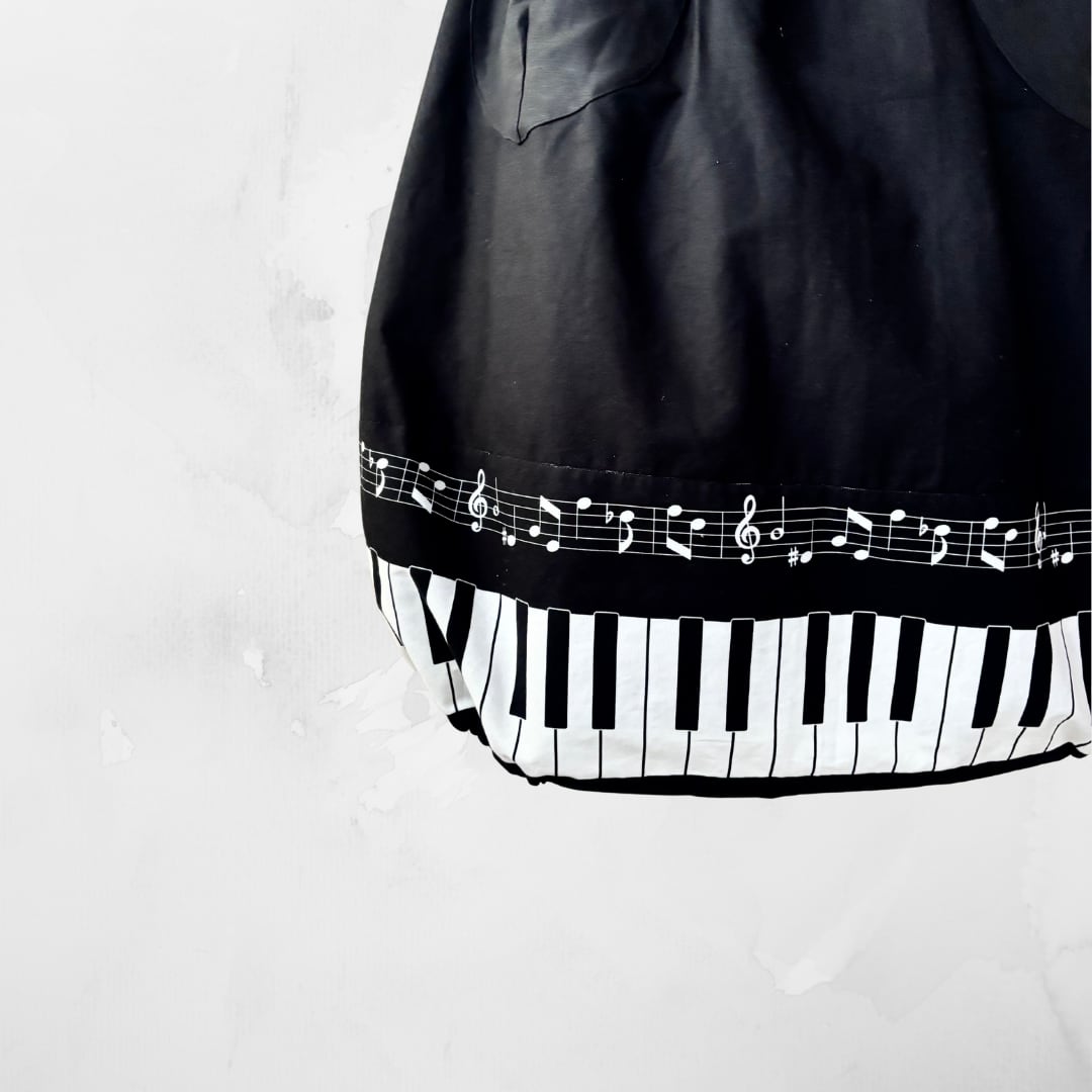 音符とピアノ鍵盤がさりげなくあしらわれた、