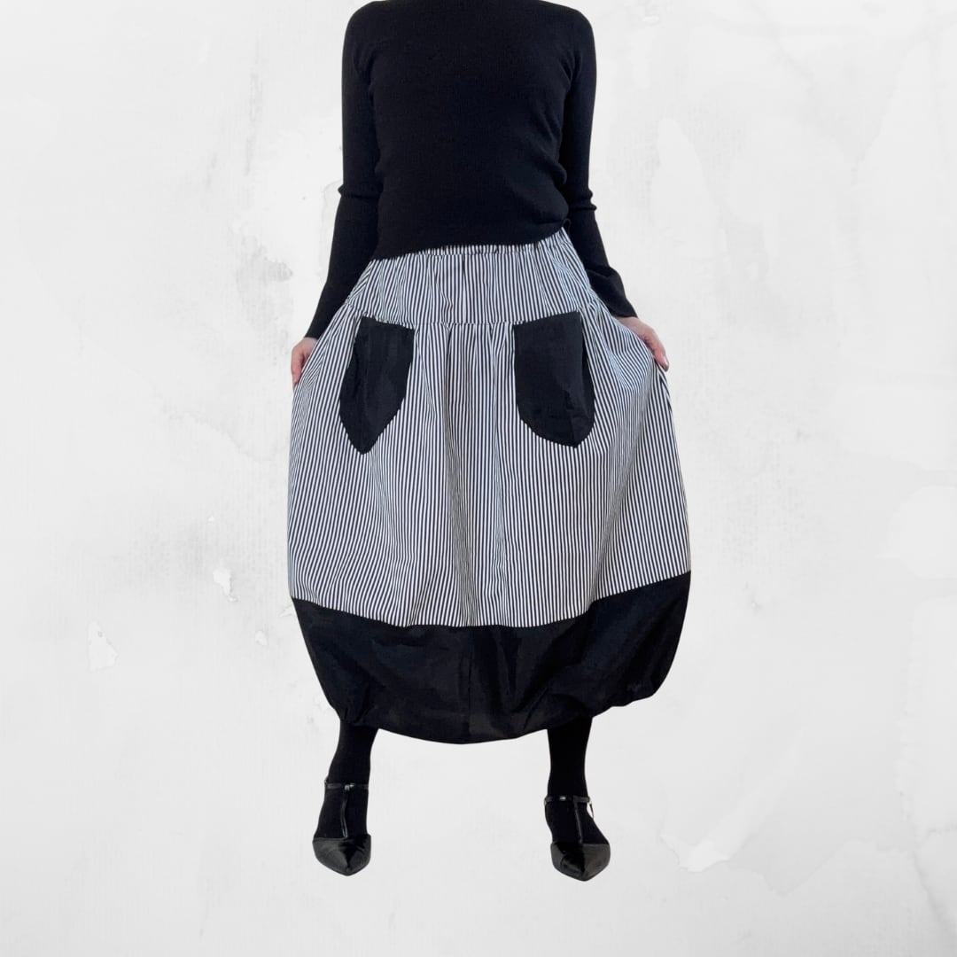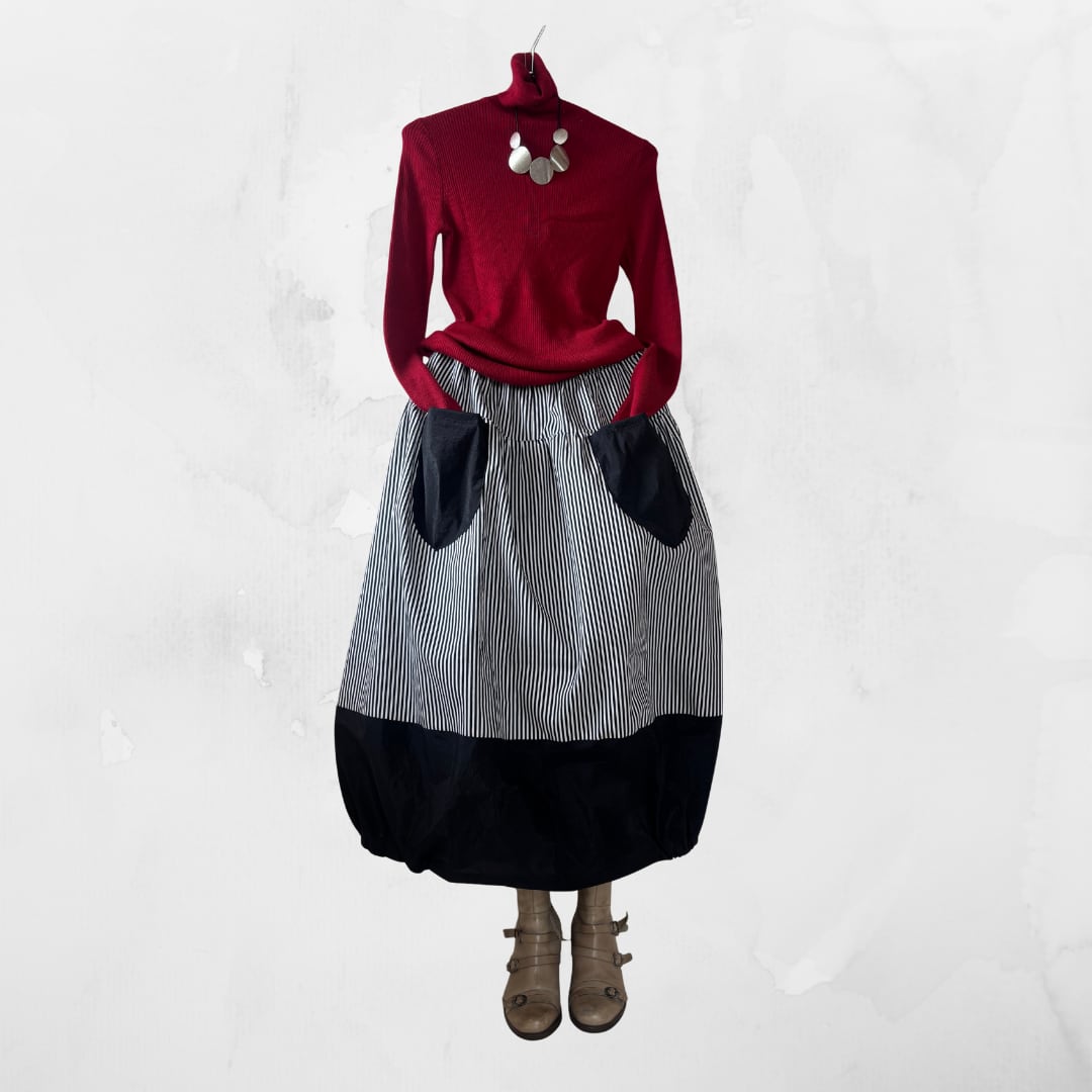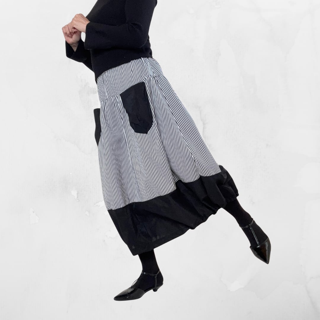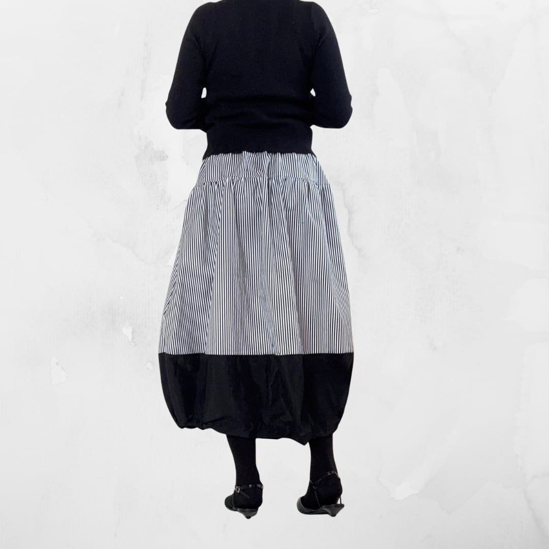 ストライプとシャリ感のあるポリエステル生地の組み合わせ