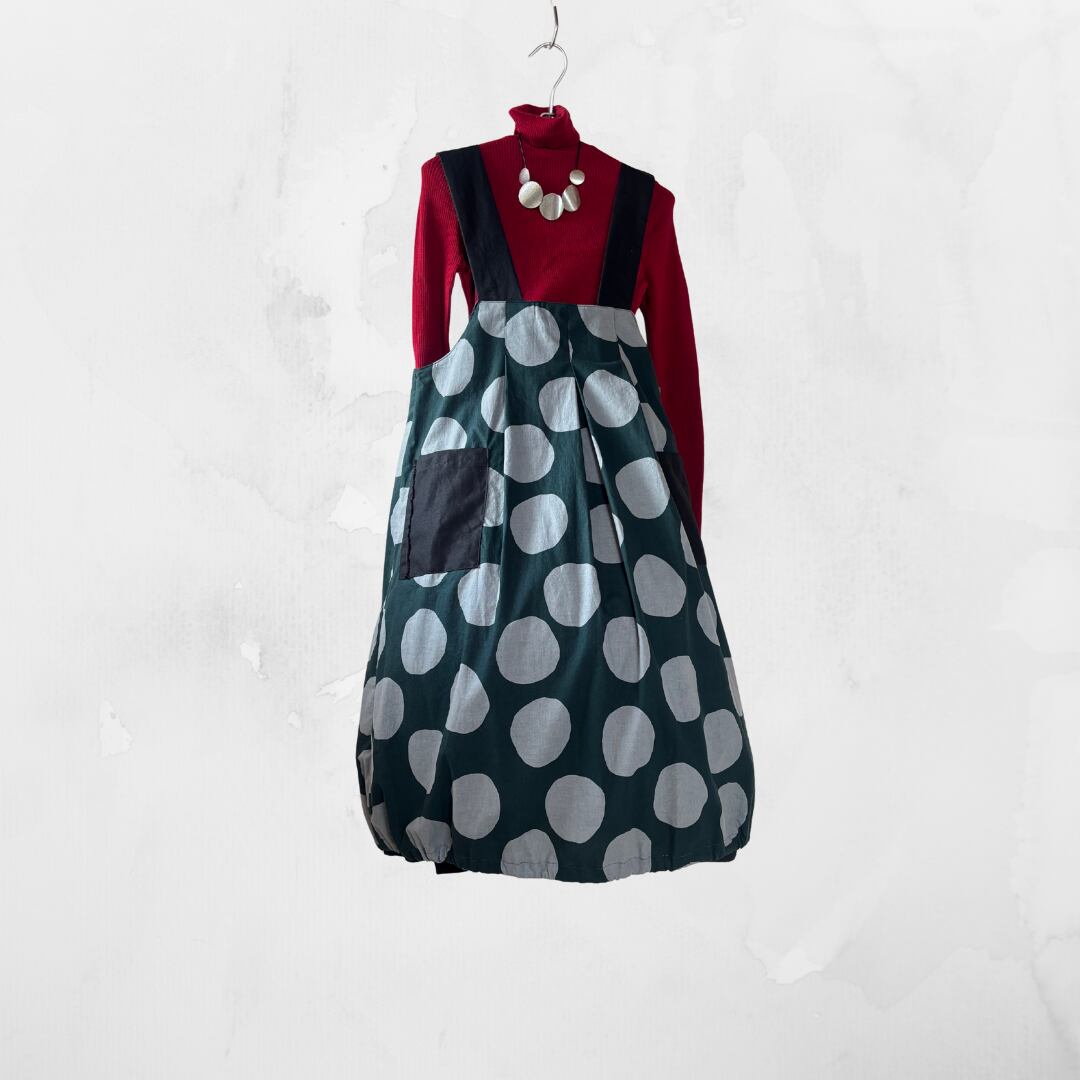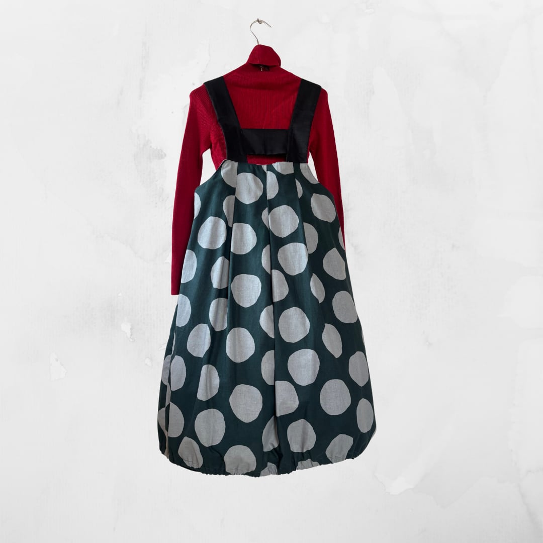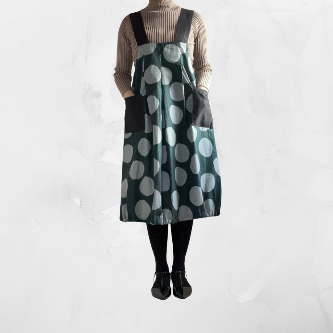 ばるんジャンパ 緑にグレードットコットンリネン