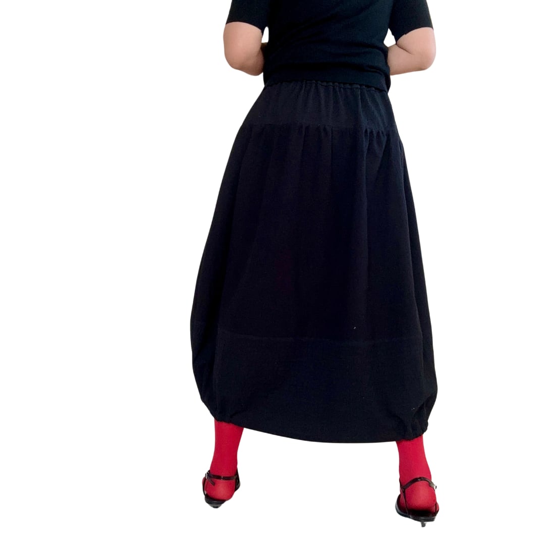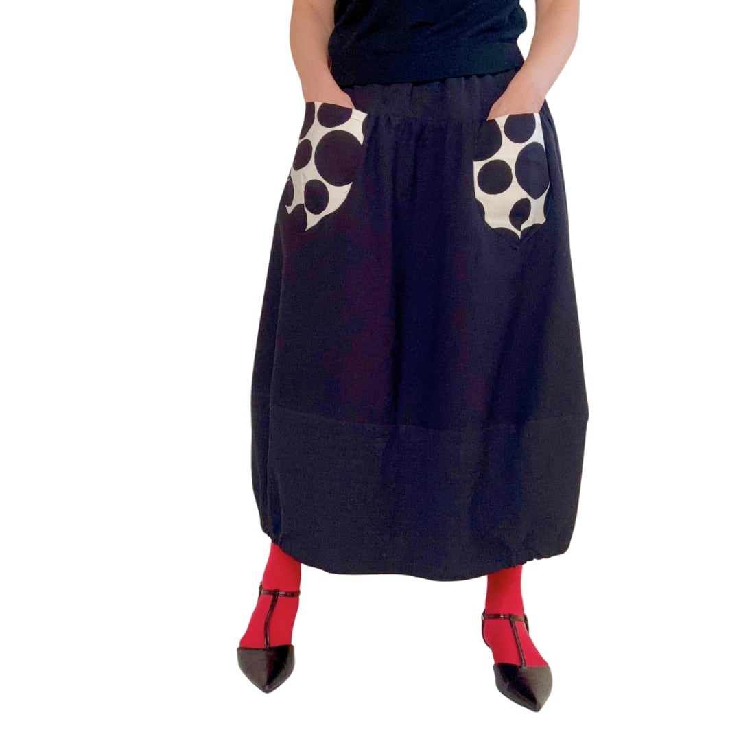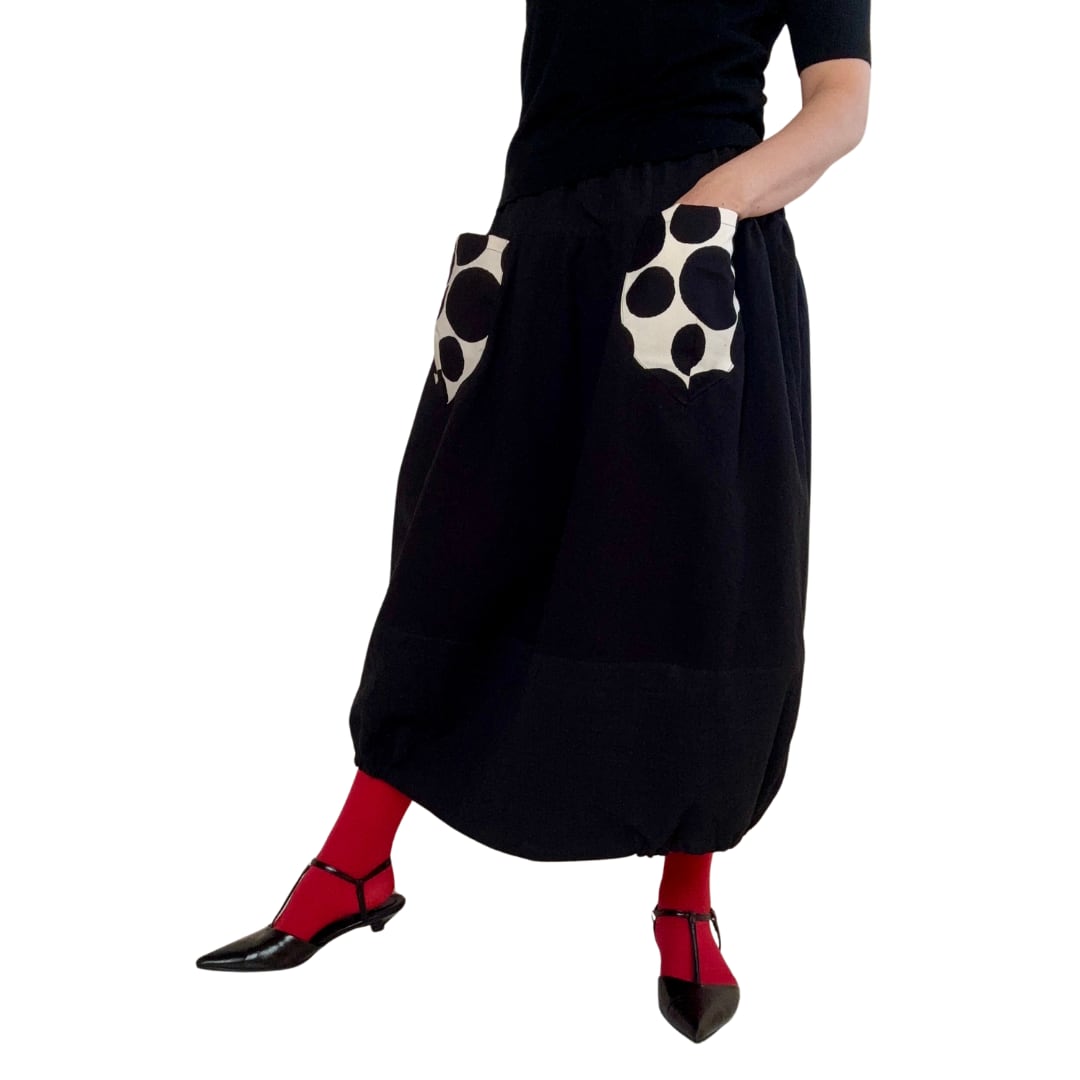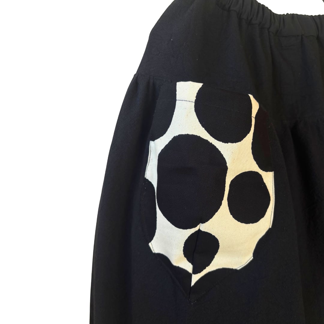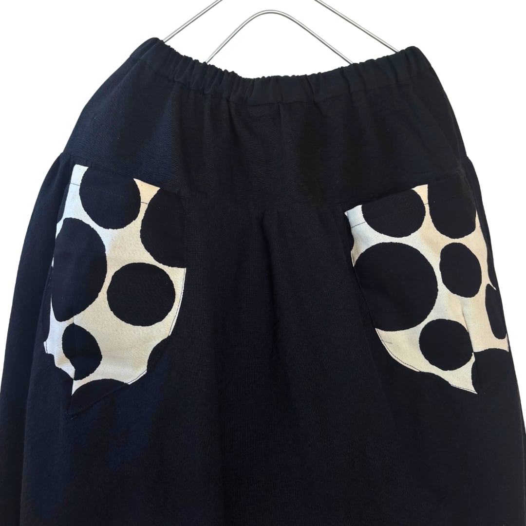 ブラックコットンをベースに、異なる素材を組み合わせたスカートです。